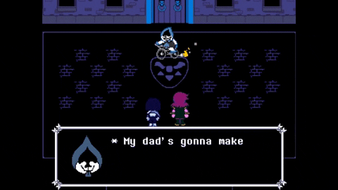 ─ These three are the only characters that can freely shift between being completely submerged in the shadows and becoming visible. The ability to cloak their body with shadows is a trait thought to be shared by all Darkners; Ralsei, after all, exhibits this all throughout our journey. What’s interesting is that there are clear parallels to sans, Lancer, and the Kings’ shadows: they conceal their entire form and reveal it during their first appearances.